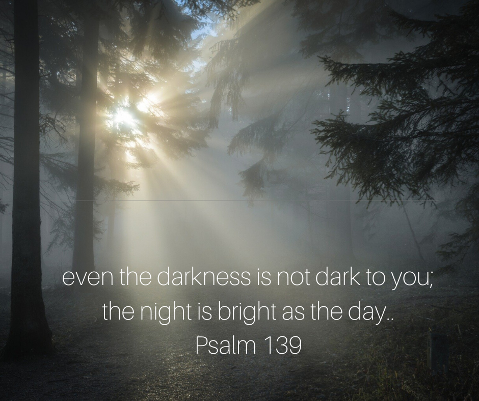 If I say, “Surely the darkness shall cover me, and the light about me be night,” even the darkness is not dark to you; the night is bright as the day, for darkness is as light with you.